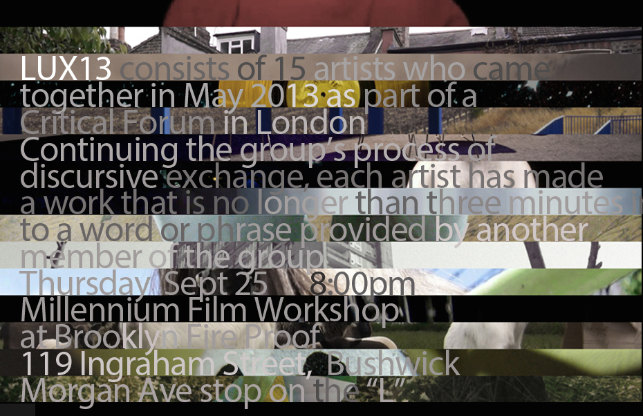 My three-minute moving image piece, light[drone] screens as part of LUX13 at Millennium Film Workshop, New York. September 2014.