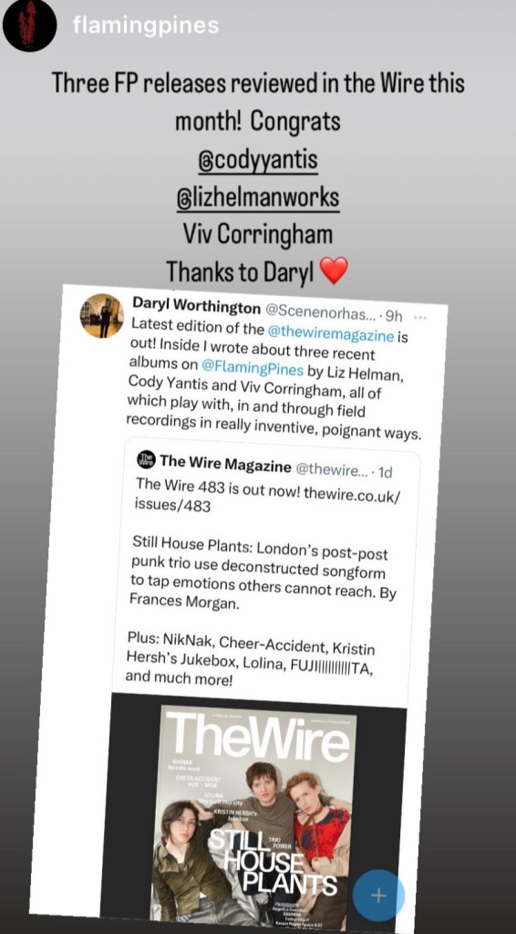 Collaboration as Longswarm with Darren McClure; our second album, Sunlight Was Peeled Away, released on Shimmering Moods Records, November 2024.https://shimmeringmoodsrecords.bandcamp.com/album/sunlight-was-peeled-away
